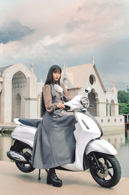 Yamaha Grande Hybrid với thiết kế mang yếu tố cổ điển kết hợp hài hòa cùng những đường nét hiện đại là một lựa chọn rất phù hợp với phong cách thanh lịch của Juky San nói riêng và các cô nàng đang cùng theo đuổi phong cách sang trọng, duyên dáng nói chung.